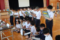1年生に自分たちの作ったおもちゃで楽しんでもらえて、2年生も嬉しそうでした。